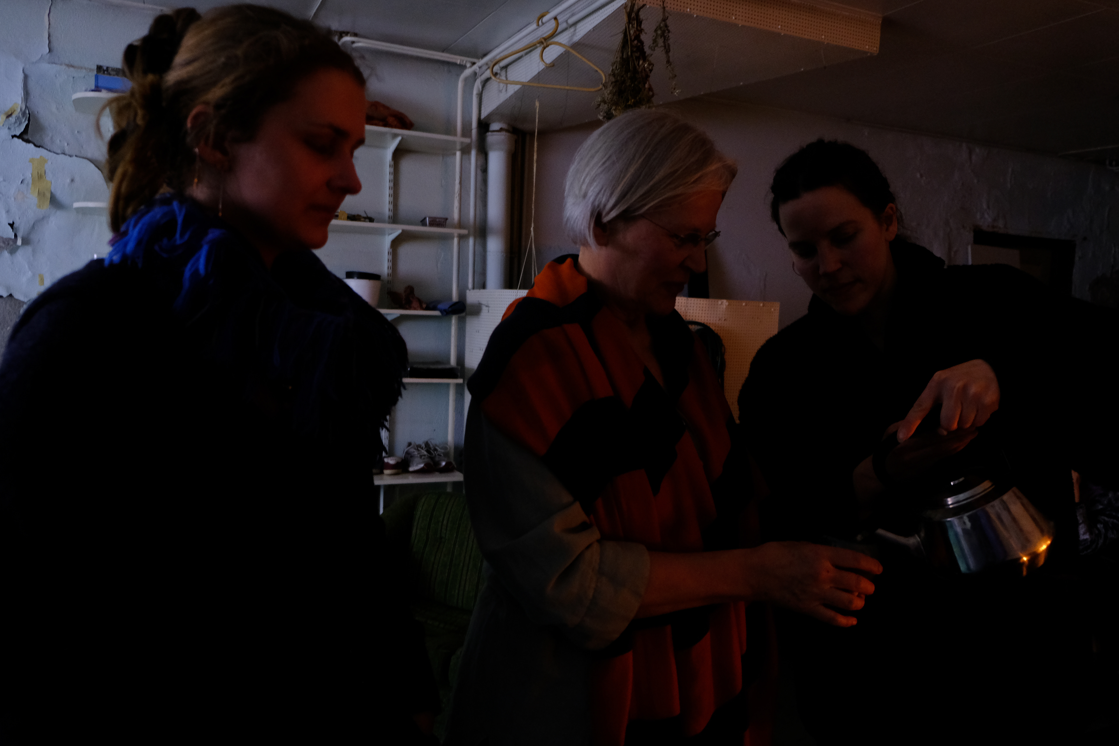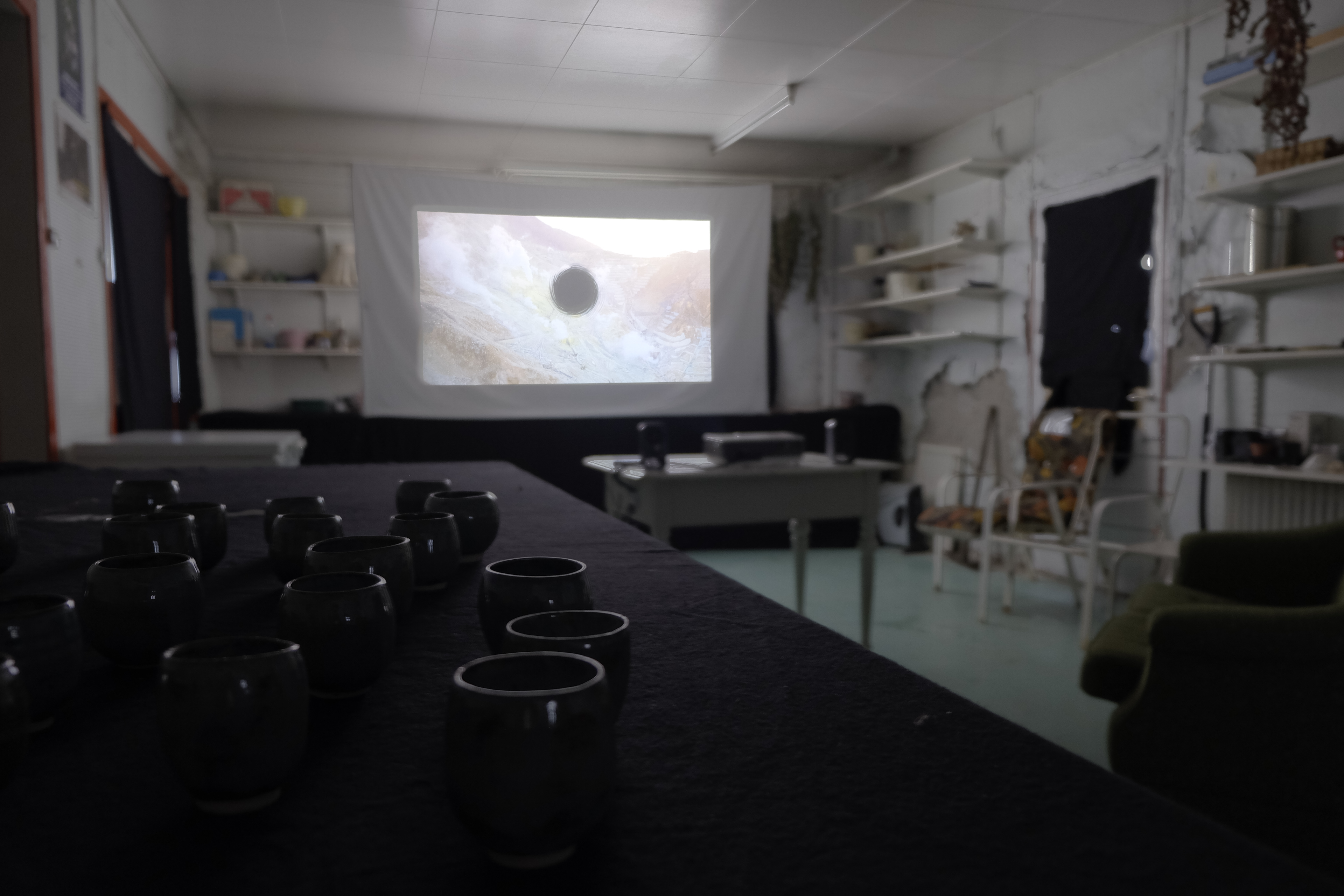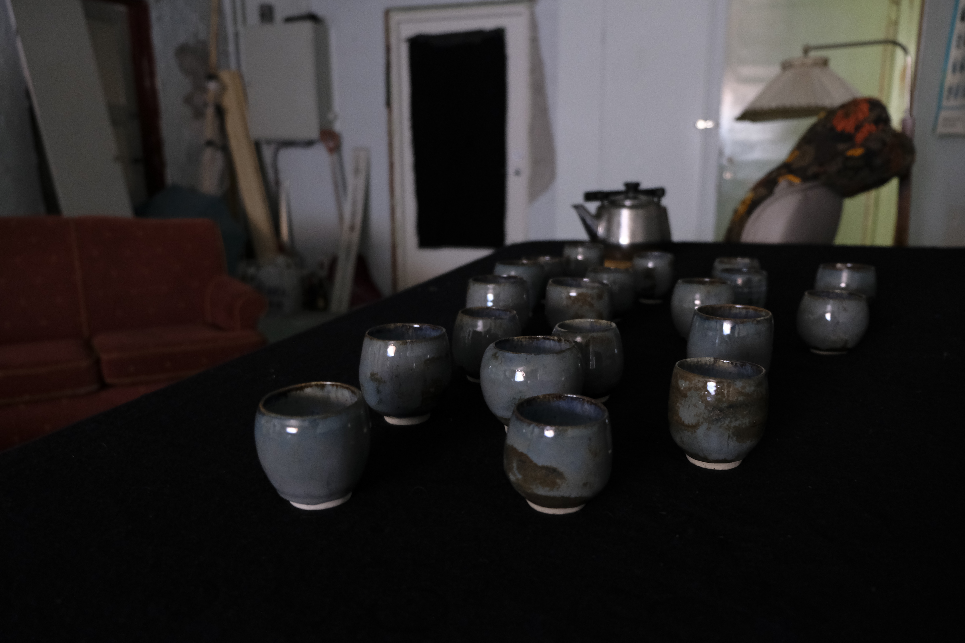 Ceramic cups (wheel thrown by artist) for serving healing tea (bukkeblad) at the opening.