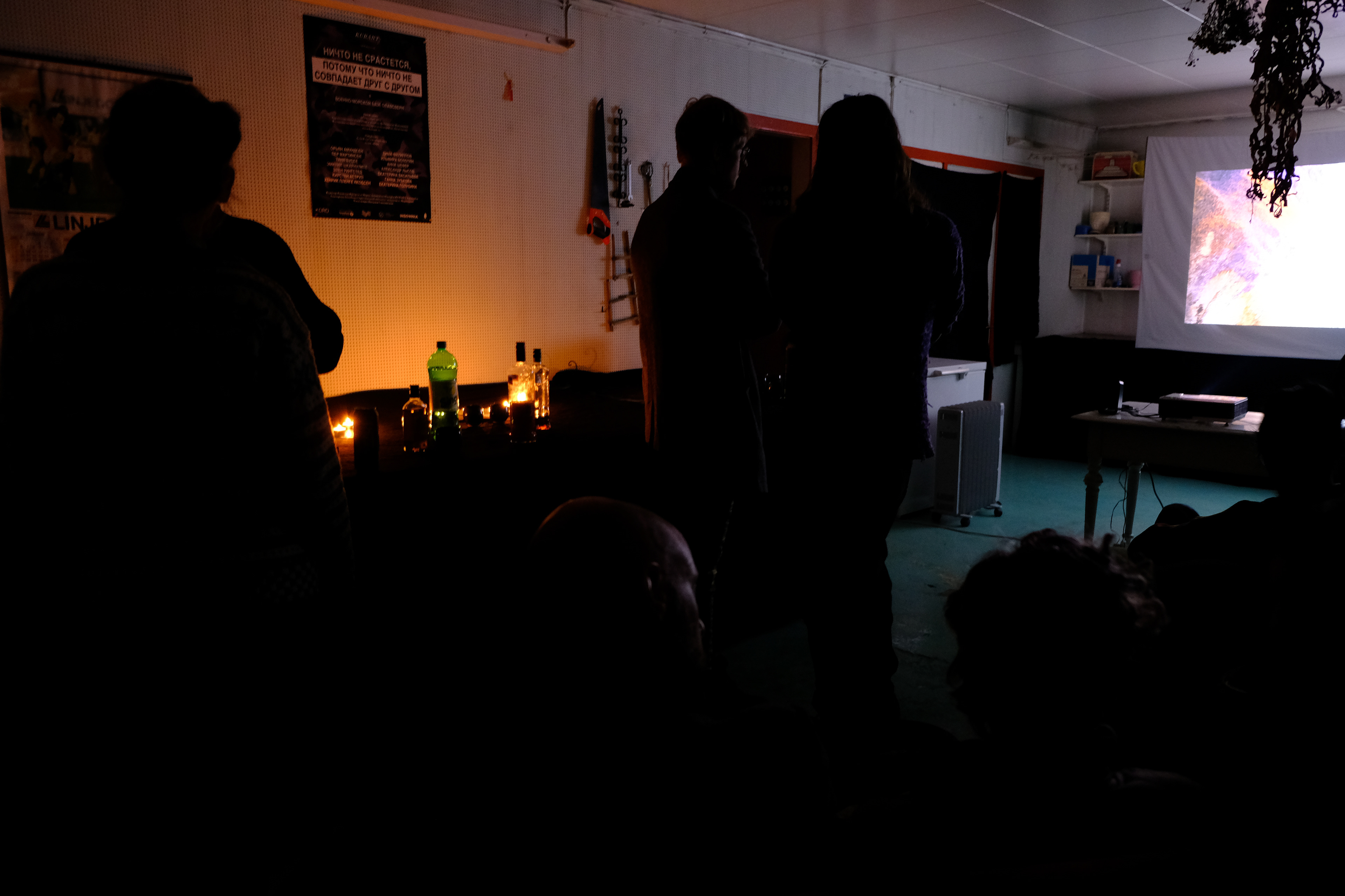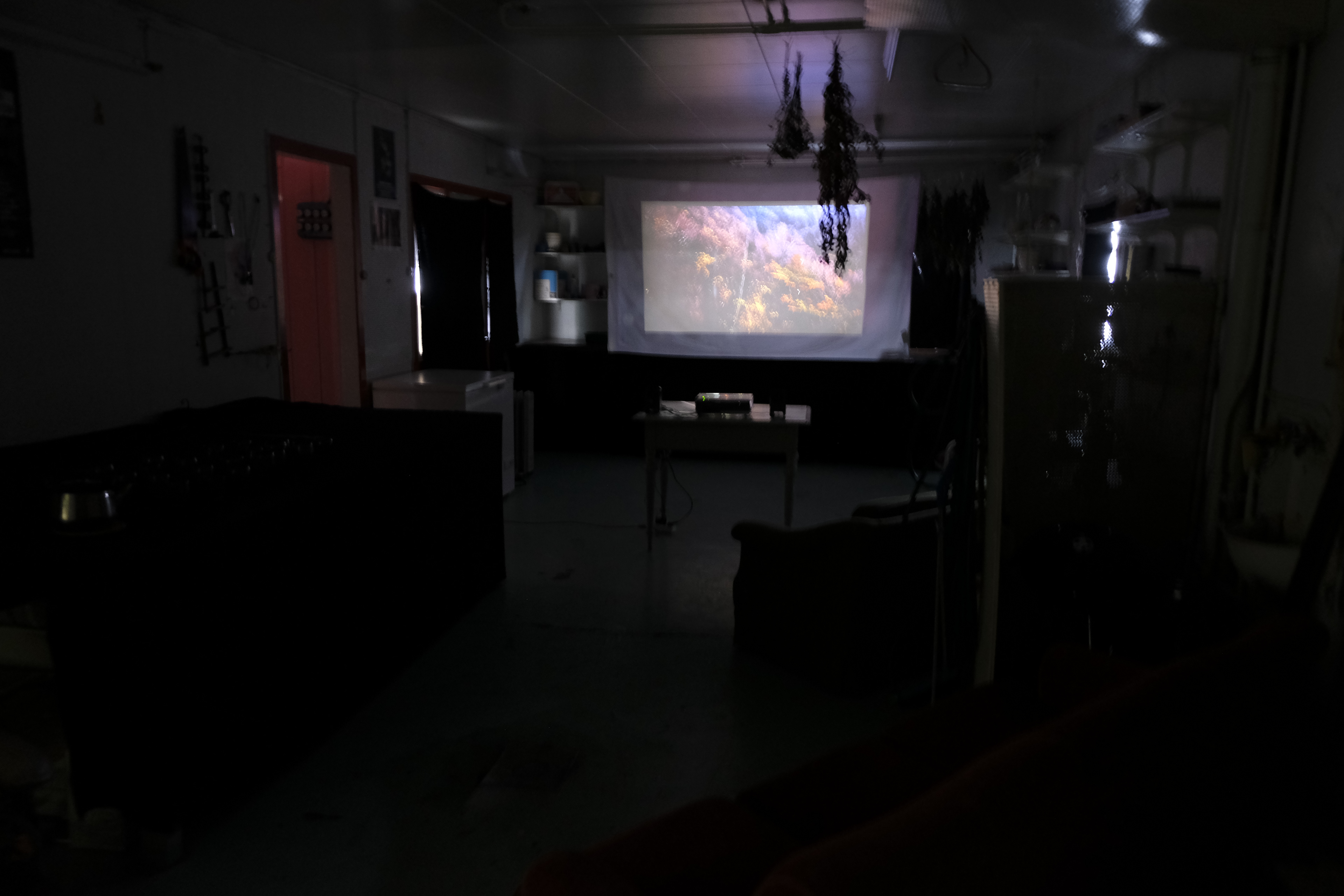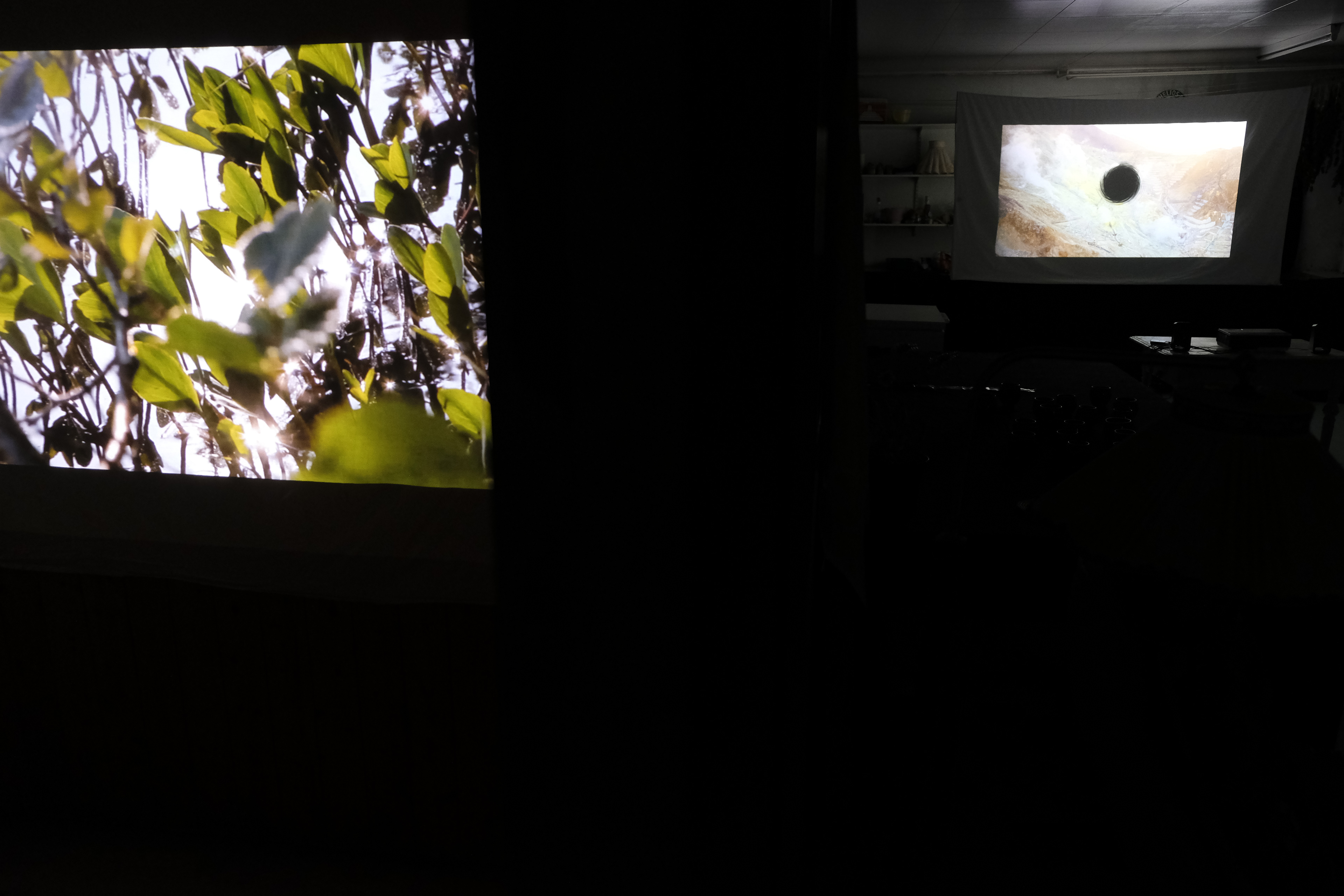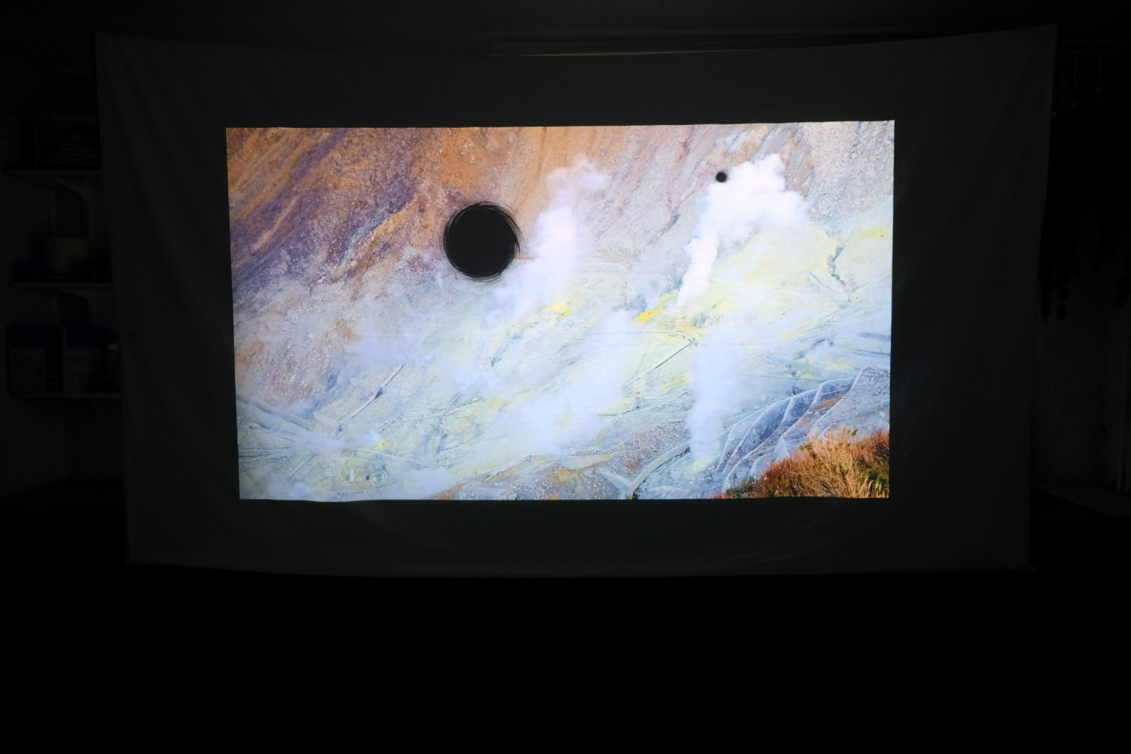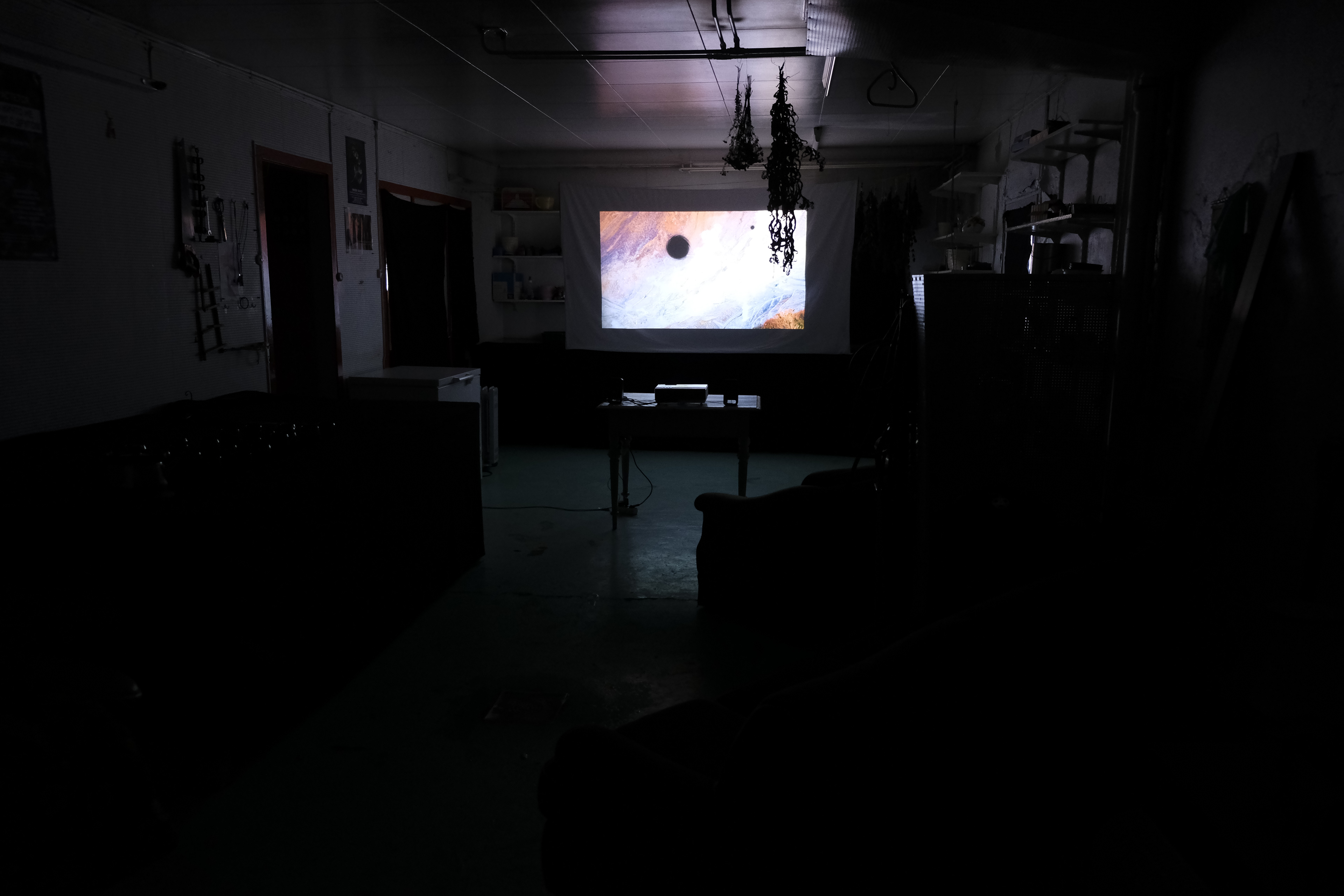 "Looming Abyss" and "The sun will eventually engulf the earth" artfilms projected in the gallery space